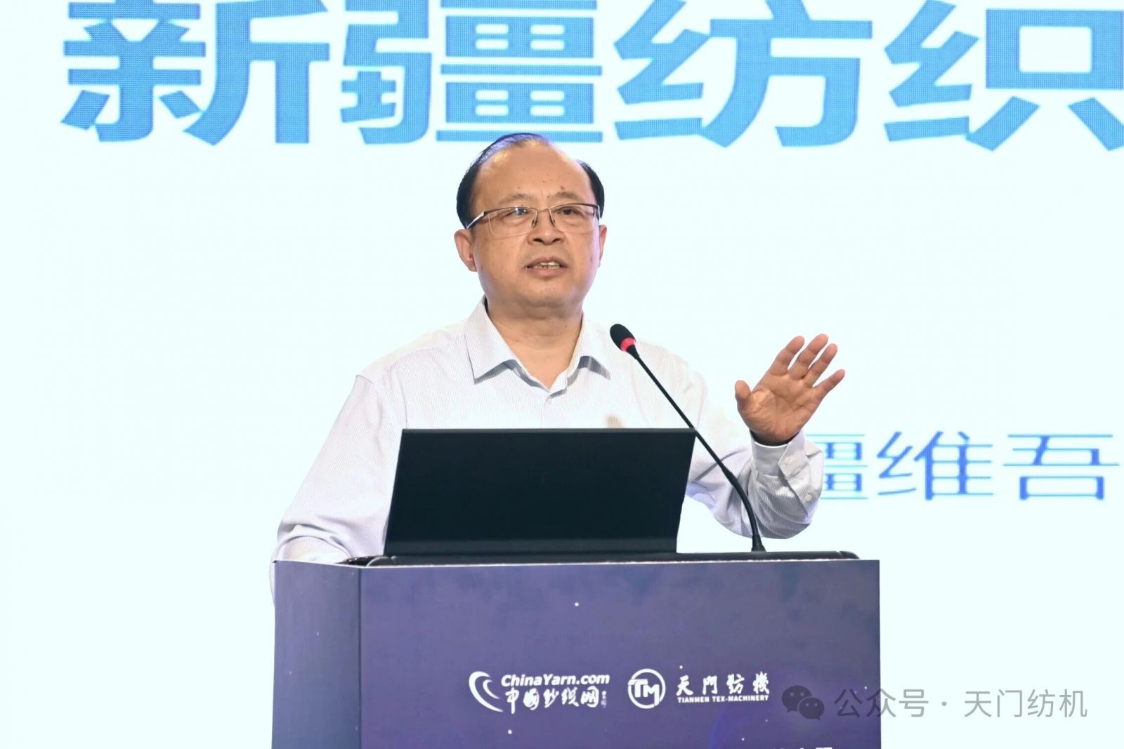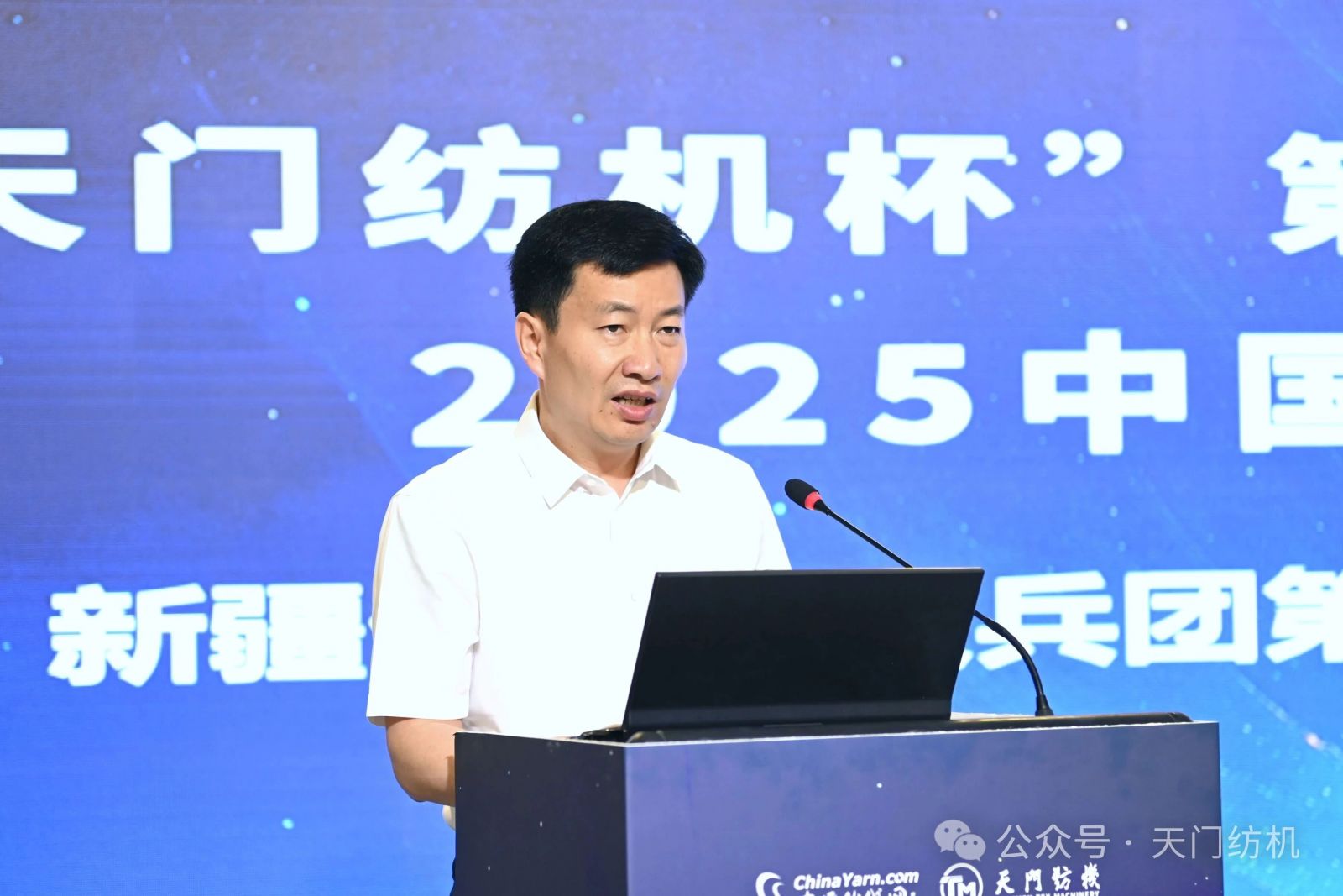 本次會議由天門紡機冠名,中國紗線網與新疆維吾爾自治區紡織工程學會共同主辦,全國政協委員、新疆維吾爾自治區棉花產業發展領導小組辦公室主任梁勇,新疆生產建設兵團第三師圖木舒克市黨委常委、副師長丁偉,天門紡機董事長沈方勇,中國紗線網總編王果剛等400余位領導、專家及代表參加會議,同步開啟的在線直播超過1萬人收看。